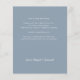 Este convite de folha de papel é o nosso menor preço neste design. O jornal não é tão grosso quanto um típico convite para o casamento, este é um 12,5, e um convite formal é 17,5. Essa diferença mantém seu custo baixo, mas você precisa estar ciente disso antes de fazer o pedido. Se quiser um cartão mais grosso, compre nosso outro exemplo em nossa coleção. Esta folha tem uma frente branca e um fundo azul empoeirado no verso. Na frente, você listará o código QR do seu site de casamento onde seus convidados podem RSVP, assim como seus nomes. Ao contrário, você adicionará uma mensagem pessoal aos seus convidados. Você pode colocar seus primeiros nomes ou, se preferir, pode excluir e assinar em casa. Qualquer pergunta não hesita em me contactar.