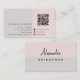 Design moderno, com coloração rosa e cinza. Composição elegante, profissional e sofisticada para um cartão de visita minimalista. Coloração feminina tão principalmente para mulheres. Ícones de mídia social do facebook, instagram incluso, assim como ícone de página da Web, mas eles podem ser removidos, outros carregados no modo de edição. O código QR do marcador de posição também foi incluído. Personalize o código QR. Por favor, personalize frente e verso enquanto o cartão está de dois lados.