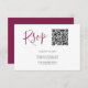 Simplifique seu planejamento de casamento com nossos cartões RSVP projetados elegantemente, completos com um conveniente código QR que direciona os convidados para o site de casamento para respostas fáceis. Essas cartas sofisticadas não são apenas práticas; elas são um componente na moda da papelaria de seu casamento, com uma cor burgundy no verso que adiciona uma cor elegante e complementa qualquer tema de casamento, particularmente aqueles com elementos de vinho. Cada cartão oferece amplo espaço para seu texto personalizado na frente, permitindo que você personalize com seus detalhes, como a data do casamento e o prazo RSVP. A inclusão de um código QR moderniza o processo tradicional de RSVP, permitindo que os convidados confirmem sua presença com uma simples varredura, conduzindo-os diretamente ao site de casamento personalizado onde podem encontrar detalhes adicionais, deixar mensagens ou escolher opções de refeição. Criadas para conveniência e estilo, essas placas RSVP combinam elegância tradicional com a funcionalidade moderna, garantindo que seus convidados tenham todas as informações necessárias na ponta dos dedos. Perfeito para o casal experiente em tecnologia que procura adicionar um toque de sofisticação ousada às suas comunicações de casamento, estas cartas irão encantar os seus convidados e fazer com que o gerenciamento da sua lista de convidados seja uma tarefa fácil.