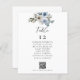 Número de mesa de casamento floral azul empoeirado e tabela de assentos com lista de convidados e código QR personalizado
