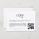 Esta placa RSVP clássica com código QR é acentuada por um preto nítido no modo design de monograma branco da noiva e das iniciais do noivo na caligrafia de script em papel texturizado de ecru. Uma escolha perfeita para temas de casamentos formais e clássicos com suas características minimalistas simples e bela tipografia tradicional. Veja o resto da coleção para elogiar suas necessidades de casamento.