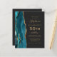 A borda esquerda deste elegante e moderno convite de aniversário 50º apresenta uma borda azul-lacrimejante agate feita com brilho dourado. O texto personalizável combina manuscrito dourado, fontes em copperplate e itálico em um fundo preto de slate. Adicione instruções RSVP na parte traseira da placa, juntamente com um código QR que os convidados podem verificar para responder on-line.