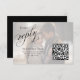 O cartão RSVP deste casamento apresenta um design preto e branco eterno com um refinado modelo de fotografia e tipografia clássica para um toque moderno, mas clássico. O elegante roteiro de caligrafia e o guia de código QR incorporado são convidados diretamente para Nossos Casamentos de Website para obter uma resposta on-line fácil. Com seu layout simples e minimalista e estilo elegante de RSVP, este cartão é perfeito para casais que buscam artigos de chic, funcionais e de papelaria para casamento.