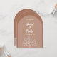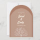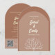 Forma moderna e bela de enviar convites a amigos e entes queridos. Este convite de casamento apresenta um estilo de arco com um tema de natureza de árvore. No verso há um código QR para respostas RSVP. Mostrado em Mcha Brown. Personalize o texto de acordo com as suas necessidades. Use a modelo para personalizar.