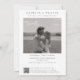 Simples convite de casamento com foto de frente e foto de trás. A parte traseira do convite tem um código QR para todos em um convite.