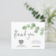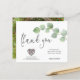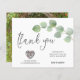 Código QR de Foto do Script Eucalyptus Leaf Obrigado. Um alternativo de 4,5 pol x 5,6 pol com preço inferior. Disponível em um STOCK DE CARTÃO SEMI GLOSS 110 lb, que é a opção padrão (recomendada para convites, semelhante à espessura de um cartão postal) OU um STOCK DE PAPEL THINNER FINISH DE 80 lb FINISH (ideal para gabinetes). Os envelopes são um extra opcional e são ligeiramente maiores que o tamanho da placa. Adicione um código QR ao seu obrigado de casamento, onde os convidados podem ver sua galeria de fotos de casamento online. Um galho de ouro elegante de folhas verdes de eucalipto flui parcialmente do lado direito, com a tipografia set Obrigado em um roteiro moderno ao lado esquerdo. No verso, troque sua foto favorita do dia (de orientação paisagística). O resto do texto na frente você pode facilmente personalizar para suas próprias palavras. Você também pode estar interessado em nosso nome de convidado individual e folhas de adesivos de endereço nesta coleção para ajudar nas suas malas de núpcias.