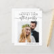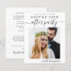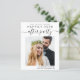 Um elopemento moderno e amigável ao orçamento ou um pequeno anúncio de casamento e recepção salvam a data com sua foto e "Salve a data para nossa festa feliz sempre depois" em uma mistura de simples tipografia e roteiro de tendências com balanços. Sob sua foto, adicione seus primeiros nomes e data e local de recepção; no verso, personalize seu anúncio de casamento, crie um código QR vinculado ao seu site de casamento para que seus convidados pesquisem mais informações e adicionem seus nomes em um script semelhante a assinatura.