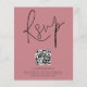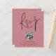 Código QR Script Wedding Dusty Rosa RSVP. Um gabinete de opções conveniente para pedir aos seus convidados que digitalizem o seu código QR para o seu site de casamento para RSVP. Um alternativo de 4,5" x 5,6" compatível com o orçamento. Disponível em um STOCK de PLACA SEMI GLOSS 110 lb ou um STOCK de PAPEL THINNER SATIN FINISH 80 lb. Uma tipografia de na moda set em preto para o título principal RSVP complementando o resto do texto que você pode personalizar facilmente. Basta alterar o URL de exemplo no modelo com o seu próprio URL da página escolhida do seu site de casamento e o seu código QR será gerado automaticamente para atualizar o código de amostra no design,