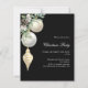 Para uma festa de Natal com familiares e amigos. Um elegante e moderno fundo negro. Decorado com bolhas brancas e douradas e um pouco de verde e um pinho. Personalize e adicione os detalhes. Voltar: adicione o URL do seu site ao código QR para RSVP e/ou detalhes da parte. 1 folha = 1 convite impresso borda a borda.