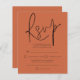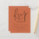 Código QR de Script de Orçamento Casamento Terracotta RSVP. Um alternativo de 4,5 pol x 5,6 pol com preço inferior. Disponível em um STOCK DE CARTÃO SEMI-GLOSS 110 lb, que é a opção padrão (mais espesso para convites), OU um STOCK de PAPEL THINNER FINISH 80 lb FINISH (ideal para gabinetes). Os envelopes são um extra opcional e são ligeiramente maiores que o tamanho da placa. O código QR do seu site de casamento está no verso, basta substituir o código de amostra. Uma tipografia de na moda set em preto para o título principal RSVP complementando o resto do texto que você pode personalizar facilmente.