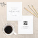 Código QR de Script preto e branco simples. Um alternativo de 4,5 pol x 5,6 pol com preço inferior. Disponível em um STOCK DE CARTÃO SEMI-GLOSS 110 lb, que é a opção padrão (mais espesso para convites), OU um STOCK de PAPEL THINNER FINISH 80 lb FINISH (ideal para gabinetes). Adicione seu código QR ao seu site de casamento no verso. Um design preto e branco simples e elegante para convidar seus convidados para salvar seu encontro. Com gentileza, Salvar nossa data está em um script moderno definido está no centro.O resto do texto que você pode personalizar facilmente. As cores de texto e de fundo podem ser alteradas se você quiser se adequar melhor ao seu tema de casamento através da opção personalizar mais.