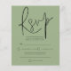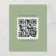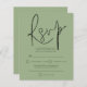 RSVP de Sage de Casamento de Código QR do Script de Orçamento Um alternativo de 4,5 pol x 5,6 pol com preço inferior. Disponível em um STOCK DE CARTÃO SEMI-GLOSS 110 lb, que é a opção padrão (mais espesso para convites), OU um STOCK de PAPEL THINNER FINISH 80 lb FINISH (ideal para gabinetes). Os envelopes são um extra opcional e são ligeiramente maiores que o tamanho da placa. O código QR do seu site de casamento está no verso, basta substituir o código de amostra. Uma tipografia de na moda set em preto para o título principal RSVP complementando o resto do texto que você pode personalizar facilmente.