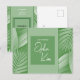 Você planeja anunciar seu casamento? Esses cartões-postais de anúncio com tema tropical oferecem um apelo divertido e clássico. Características tons de verde cortados com folhas tropicais. A frente do cartão exibe as palavras "Recém-Casados" junto com o nome do casal. O verso do cartão-postal acomoda uma das suas fotos favoritas junto com um código QR. Use o código QR para o vídeo do casamento, site (entre outros). Há também espaço para o nome do casal e a data do casamento no verso. Use o modelo para personalizar.