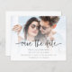 Um valor para o alternativo do ORÇAMENTO em tamanho menor de 4,5 x 5,6" de semirbrilho de 110 lbs, que é de espessura semelhante a um cartão postal (no entanto, não é adequado para uso como cartão postal). POR FAVOR, OBSERVE QUE HÁ UM convite por folha. Código QR de Código de Foto do Script de Orçamento Salva a Data. Basta substituir o exemplo de foto pelo seu favorito. Uma camada de camada de gradiente está sobre a sua foto, de modo que ela desaparece à medida que ela chega ao centro com o texto parcialmente sobreposto no topo. Salvar A data está em um script de conjunto de na moda com alternâncias e personalizar facilmente o resto do texto. Se você tiver um site de casamento, adicione seu código QR ao seu site de casamento no verso substituindo o código QR na amostra ou exclua esse código e texto se não for necessário por meio de personalização adicional. Você pode criar códigos QR gratuitamente on-line. Basta pesquisar "Criador de código QR" e muitas opções surgem para criar gratuitamente.