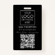 Um moderno crachá de negócios minimalista personalizado com logotipo de negócios e código QR. Personalize com seu logotipo, código QR e detalhes para criar seu próprio crachá de negócios preto e branco elegante. Personalize ainda mais com um fundo ou fonte de cor personalizado.