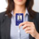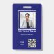 Crachá de código qr de funcionário corporativo de foto azul personalizado para negócios, organização, centro médico, lojas, enfermeiros, fabricantes, professores, escola, banco, todo tipo de corporações. Identifique o funcionário com cartão de identidade ou crachá e adicione nome, nome da empresa, logotipo e código qr. Personalize com foto do funcionário, nome, logotipo, código qr, texto personalizado. Crachá de funcionarios de funcionário corporativo com código qr azul mínimo