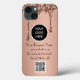 Elegante, moderno, minimalista, Logotipo, Código QR, na moda, simples rosa, brilho, caso do iPhone 13 com gotejamento. Perfeito para os negócios. Personalize com nome, site e logotipo.