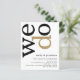 Um valor para o alternativo do ORÇAMENTO em tamanho menor de 4,5 x 5,6" de semirbrilho de 110 lbs, que é de espessura semelhante a um cartão postal (no entanto, não é adequado para uso como cartão postal). POR FAVOR, OBSERVE QUE HÁ UM convite por folha. Código QR Dourado de código QR preto Convite de casamento branco preto no orçamento. Adicione seu código QR ao seu site de casamento no verso para que seus convidados possam RSVP e ver todos os detalhes on-line sem a necessidade de gabinetes separados. Um design tipográfico moderno com Nós fazemos em grande tipografia rotacionada e ao lado no topo em preto e ouro sobre fundo de branco. As cores de fundo e texto podem ser alteradas se você desejar, por meio de Personalizar mais.