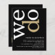 Um valor para o alternativo do ORÇAMENTO em tamanho menor de 4,5 x 5,6" de semirbrilho de 110 lbs, que é de espessura semelhante a um cartão postal (no entanto, não é adequado para uso como cartão postal). POR FAVOR, OBSERVE QUE HÁ UM convite por folha. Código QR do ORÇAMENTO Convite de casamento preto branco Dourado. Adicione seu código QR ao seu site de casamento no verso para que seus convidados possam RSVP e ver todos os detalhes on-line sem a necessidade de gabinetes separados. Um design tipográfico moderno com Nós fazemos em grande tipografia rotacionada e ao lado no topo em branco e ouro sobre fundo de preto. As cores de fundo e texto podem ser alteradas se você desejar, por meio de Personalizar mais.
