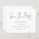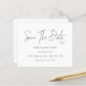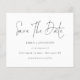 Script QR Code Wedding Salvar A Data. Um alternativo de 4,5 pol x 5,6 pol com preço inferior. Disponível em um STOCK DE CARTÃO SEMI-GLOSS 110 lb, que é a opção padrão (mais espesso para convites), OU um STOCK de PAPEL THINNER FINISH 80 lb FINISH (ideal para gabinetes). Simples elegância com Salvar a Data em um script moderno.O resto do texto que você pode personalizar facilmente. Com o seu código QR no seu site de casamento. Mostrado aqui em preto sobre branco, no entanto, as cores de texto e fundo podem ser alteradas se você desejar por meio da opção personalizar mais.