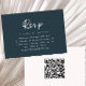 Este moderno guião azul escuro e o cartão de resposta de casamento cor-de-rosa pincelado inclui um lugar para o seu código QR, para que os convidados possam facilmente consultar o seu website de casamento.
