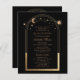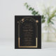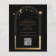 Célestial Black Dourado QR Code Quinceañera Invices apresenta um elegante sol dourado, lua e estrelas com ouro em fundo preto. Dentro é a sua informação de convite da Quinceañera. No verso, adicione informações adicionais, como o site da Quinceañera e o código QR. Personalize editando o texto nas caixas de texto. Projetado para você pelo Evco Studio www.zazzle.com/store/evcostudio