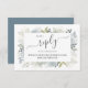 Este design apresenta um cartão de registro QR RSVP online de cerâmica floral, com um elegante modelo poeirento de flores azuis, uma resposta de convidado do website de cor aquosa verde, rosas folhas de folhagem respiratória de bebê, um script de caligrafia de na moda simples, link de URL digitalizável, romântico elegante branco, cartão de resposta de inserção clássico personalizado, com um estilo botânico romântico suíte de papelaria floral azul