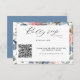 Carregue facilmente seu próprio código QR para que os convidados pesquisem e RSVP on-line diretamente em seu site. Belo cartão de inserção com elementos caligráficos manuscritos modernos e detalhes florais de aquarela em rosa poeirento e tons azuis empoeirados. Capacidade de adicionar seu endereço de site também, para aqueles convidados que preferem acessar seu site da maneira tradicional. Basta clicar no botão "alterar" do código QR para carregar seu próprio código QR. Volte em azul empoeirado "cor de fundo" que pode ser alterada para qualquer outra cor que você quiser selecionando "personalizar mais". Parte da nossa coleção "Blissful Floral" com uma variedade de produtos de coordenação disponíveis.