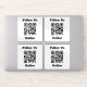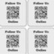 Quatro adesivos com código QR e com a mensagem "Sigam-nos online". Substitua o URL do Código QR pelo seu próprio link de site.