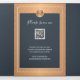 Convite clássico elegante para casamento em ouro metálico luxuoso de cobre com cartão rsvp, CÓDIGO QR para o site e informações de alojamento para convidado com formas geométricas e padrão de diamante com um script de tipografia branco moderno, escrito à mão, sobre fundo azul-da-noite. +++ Personalize-o com os seus detalhes e as iniciais do casal monograma! ++++++ Adequado para o luxo elegante clássico elegante e elegante gravata negra formal qualquer casamentos de estação.