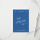 Um cartão de RSVP de casamento azul com uma frente de letra manuscrita negrito e um verso branco limpo com um código QR para respostas online fáceis. Totalmente personalizável com seus nomes, data, código QR, local e prazo de resposta. Parte da coleção de casamento coordenada "Florence" — explore peças de papelaria correspondentes para completar seu conjunto. Mockups para este design foram criados usando Midjourney AI.