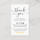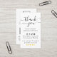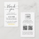 Obrigado preto e branco moderno e elegante para o seu pedido insira cartões com um nome de mídia social personalizável, hashtag, pedido de revisão, 2 códigos QR para um site e compro, logotipo de sua empresa e espaço para adicionar detalhes de código ou informações que os seus clientes desejarem conhecer. Esta versão não inclui um código de cupão personalizado, mas está disponível no compro. Os ícones podem ser alterados ou excluídos clicando-se no botão de personalização.