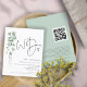 Um valor para o alternativo do ORÇAMENTO em tamanho menor de 4,5 x 5,6" de semirbrilho de 110 lbs, que é de espessura semelhante a um cartão postal (no entanto, não é adequado para uso como cartão postal). POR FAVOR, OBSERVE QUE HÁ UM convite por folha. Código QR Orçamento Eucalyptus Fazemos Convite De Casamento. Adicione seu código QR ao seu site de casamento no verso faz com que esta seja uma opção conveniente para seus convidados para RSVP e veja todos os detalhes sem a necessidade de RSVP separado e cartões de detalhes. Basta alterar o URL de exemplo no modelo com o seu próprio URL da página escolhida do seu site de casamento e o seu código QR será gerado automaticamente para atualizar o código de amostra no estilo botânico design, Minimalista, com um script manuscrito definido para Nós e o resto do texto que você pode personalizar facilmente. Um galho elegante de folhas de aquarela eucalipto corre pelo lado esquerdo.