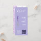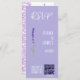 Esta placa RSVP de tendências em cores de lavanda é a combinação perfeita da mesma coleção. A design apresenta cor de lavanda clássica e tipografia moderna misturada com caligrafia elegante. O cartão tem um código QR que você pode fazer simplesmente adicionando seu endereço de site de casamento; você pode usá-lo para seu site de casamento ou sua lista de presentes de casamento.
