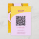 O moderno Cartão RSVP de Casamento de Verão italiano foi concebido para elevar os seus convites para o convite de casamento com um toque de elegância. Seus convidados podem examinar facilmente o código QR para acessar seu site de casamento, onde podem RSVP on-line em apenas alguns cliques. Esse processo perfeito garante que você não perderá uma resposta do solteiro, permitindo que você se concentre no que realmente importa — celebrando seu grande dia. Mantenha as coisas simples e na moda com esta solução moderna para gerenciar sua lista de convidados sem esforço. Apresentando seus detalhes em um roteiro moderno, este cartão mostra uma bela mistura de cor-de-rosa e lavanda que complementa perfeitamente o tema do seu casamento. No verso, uma fatia de limão vibrante contra um pano de fundo amarelo ensolarado irradia a alegria e o calor de um verão italiano, acrescentando um elemento lúdico, mas sofisticado, à sua papelaria de casamento. Perfeitamente aliado ao nosso convite para o casamento de Verão italiano moderno, este cartão RSVP adiciona um toque de sofisticação e encanto que os seus convidados vão amar.