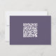 Este moderno cartão de resposta de casamento de tipografia roxa e minimalista inclui um lugar para o seu código QR para que os convidados possam facilmente consultar o seu website de casamento.