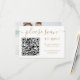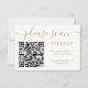 Um simples cartão de resposta elegante com grafia dourada incluindo seu próprio código QR e detalhes do site do casamento em tipografia sofisticada e foto especial no verso. Criado por Thisisnotme©