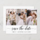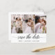 Código QR - Paisagem Horizontal Moderna e Elegante Três (3) Foto Salvar o Magnete de Casamento de Data com tipografia de script com letra de mão. O ímã para salvar o convite de data inclui tipografia de script e chic e design simples para a qual você pode adicionar sua fotografia personalizada de noivado.