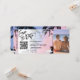 Destino Cartão de Embarque para Casamento na Praia Bilhete Dourado com ícone de coração e avião com arte de linha minimalista simples mapa-múndi e fundo de praia Adicione seu Código QR