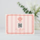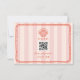 RSVP de Casamento com quadro vermelho e ilustração de shell sobre fundo de faixa de rosa claro com texto vermelho em frente e atrás. Personalize o texto e o código QR.