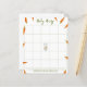 Convites para chuveiros de bebês neutros em termos de gênero. Apresentando o ditado "UM PEQUENO BUNNY ESTÁ A CAMINHO!", uma ilustração de um coelho aquoso (coelho) com cenoura em patas, e muitas cenouras cor de laranja. Itens correspondentes disponíveis.