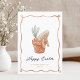 Celebrar a Páscoa com este charmoso cartão de boas-vindas, que apresenta uma ilustração esbranquiçada de um coelho descansado num pote de flor de poca com cenoura e verde. O design de aquarela suave e as bordas redimensionadas adicionam um toque de elegância e brincadeira, fazer-o perfeito para enviar desejos quentes de feriados para familiares e amigos.