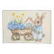 Apresentando nosso coelho personalizado com travesseiro de Flores Azuis! Com um pequeno coelho segurando flores silvestres azuis, um carrinho de madeira com muitas flores silvestres azuis e uma casinha nas costas, este travesseiro traz encanto e brincadeira a qualquer quarto!