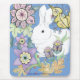 As folhas e as flores intrincada detalhadas cercam este coelho branco doce, relaxando no jardim. Criado de um desenho original inspirado por padrões do mehndi do henna, este mousepad fará uma adição impressionante e bonita a todo o espaço de trabalho, a uma obra de arte disponível e collectible para manter-se ou dar como um presente.