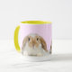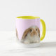 Coelho bonito em uma caneca amarelo-afiada
