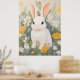 Eleve qualquer cômodo com este belo pôster apresentando um coelho branco fofinho aninhado entre flores vibrantes da primavera. A ilustração detalha a pelagem macia do coelho e seus olhos expressivos, complementados por um fundo de folhagem verde exuberante e calêndulas amarelas. Ideal para trazer um toque da tranquilidade da natureza e a alegria da primavera para dentro de casa, este pôster é perfeito para berçários, salas de estar ou qualquer espaço que valorize a beleza da vida selvagem e da flora.