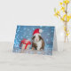 Um belo coelho pronto para o Natal. Cartão de Cartões de natal de Natal de excelente. Muito fofo.