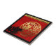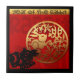 Em um quadrado há um corte de papel preto no Rabbit, colocado no canto esquerdo olhando para um dentro de forma redonda de ouro, que é o segundo coelho com ideograma. Por trás da cena há um fundo vermelho no qual letras decorativas e ornamentados formam as palavras: ANO RABBIT. Design no azulejo de cerâmica quadrada. Cartões verticais e horizontais, cartões postais de férias, autocolante, papel tecidular, caixas de favor, suprimentos de festas e muito mais... Perfeito para o Ano Novo Chinês do Coelho ou do aniversário (nascer pessoas no Ano do Coelho).
