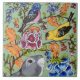 Um dos meus designs mais populares, um coelho de cinza fofo, fofo, investiga um jardim de flores colorido, Jacobean - inspirado por inspiração. Há também dois pássaros pequenos e um caracol! O mural é vendido como dois azulejos separados, metade superior e metade inferior, com várias cores de fundo moles.Este mural seria bonito em qualquer configuração de azulejo e adicionaria um toque de cor e choradeira. Arte de azulejo com moldura perfeita (você fornece o quadro). O mural vai iluminar um banheiro, um quarto de criança ou cozinha - e que tal aquele pátio ou aquele anzol de varanda? Trabalho de arte e design de azulejo de original, únicos e caprichos de Tuzi Williams. Disponível apenas na Zazzle, a empresa produtora do meu trabalho de arte, com garantia de 100% de satisfação do cliente!