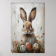 Coelho da Páscoa em Impressão de Flor, Ovos da Páscoa Rústicos, Decoração de Pintura de Parede Cottagecore, Cartaz Vintage para Impressão, Decoração de Berçário